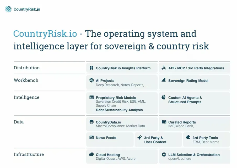 The legal industry offers a compelling preview of what lies ahead for macro research and sovereign risk analysis. Just as AI is restructuring the legal value chain — turning access to legal information into a commodity, automating expert commentary, and steadily climbing the advisory pyramid — the same forces are reshaping how countries and markets are analysed. Secondary research providers and advisory firms that rely on manual synthesis of publicly available information face the greatest displacement, while those closest to primary data and those who can translate analysis into client-specific context will retain their edge. At CountryRisk.io, we are building for this future by combining deep primary data infrastructure, explicit analytical reasoning through quantitative models and AI skills, and contextual relevance tied to each client’s specific decisions. The organisations that will thrive in this new landscape are not those that resist the shift but those that recognise where human judgment still matters — in sourcing and verifying primary information, in encoding domain expertise into reusable analytical frameworks, and in understanding the unique context behind every business decision. The transformation is not coming; it is already here.